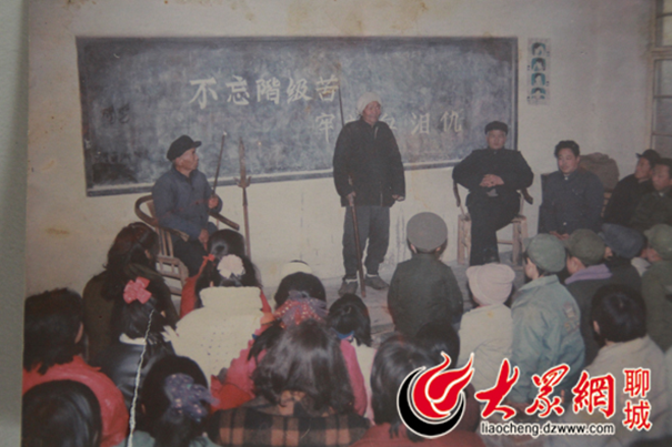 1991年,茌平县组织部来阚庄,幸存抗战老人为孩子们讲述抗战故事。资料片