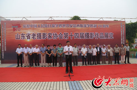 大众网聊城8月31日讯(记者 王传胜 王新)8月31日上午,由中共聊城市委宣传部主管、山东省老摄影家协会主办、聊城市老摄影家协会承办的"庆祝抗战胜利70周年大型摄影展览"在聊城市人民广场举行。山东省老摄影家协会主席时盘棋,中共聊城市委常委、宣传部长赵庆忠,市人大常委会副主任孙菁,市人民政府副市长马丽红,市政协副主任潘延红等出席了开幕仪式。此次展览时间将持续到9月9日。