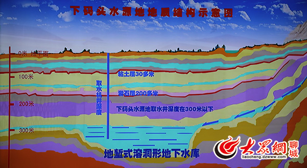 在东阿水源地,工作人员介绍,该水源区为独立的水文地质单元,南依黄河,东西以两条南北向断裂带为界,形成了一个“地堑式”天然溶洞形地下水库。该岩溶含水层位于地下300多米,与上层浅表水有200米的岩石层和30多米的粘土层相隔,地下水经过长年矿化,水中富含40多种微量元素,其中锶含量每升0.48毫克,PH值在7.4至7.9,是理想的富锶型弱碱性优质矿泉水。
