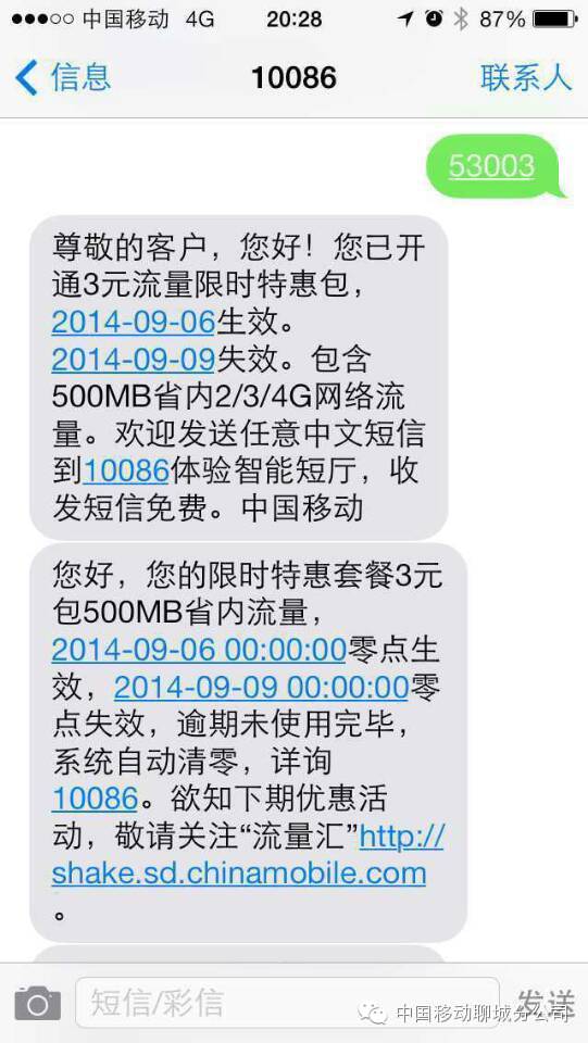 别美了,快去发送53003到10086,开通“3元流量限时特惠包”!