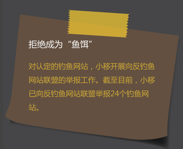 小移的“防钓宝典”虽然面面俱到,但钓鱼网站本身就是非法存在,所以小移对钓鱼网站绝不姑息,早已开展了轰轰烈烈的“反击战”。