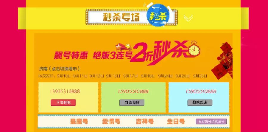 精选绝版3连号,2折秒杀!