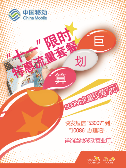 口袋空空?没关系啦,开心一点,只要7元就可以度过漫长的国庆长假!7元哦!随便刷,随便玩,500M流量管够!有流量就不寂寞,只要动动手指发个短信就OK啦!快快将“十一限时特惠流量套餐”收入囊中!一般人我不告诉哦!