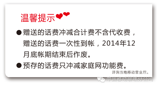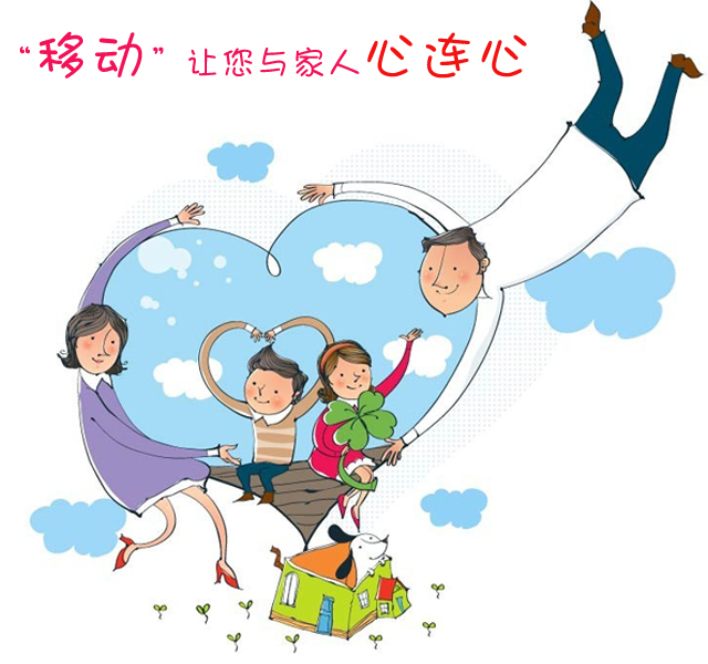 移动最贴心,想的到的想不到的,移动都为您考虑到了!特推出”欢乐家庭包“,五分钱一分钟!预存”欢乐家庭“10个月功能费,还送等额话费呢!存30送30,存50送50,存100送100!
