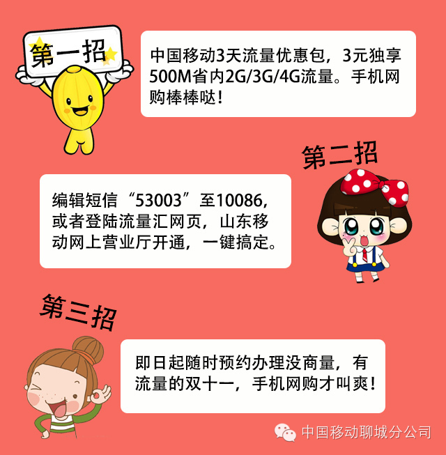 关键时刻,还是移动最给力,3元包500M省内2G/3G/4G流量,让你放心的买!买!买!全都买!