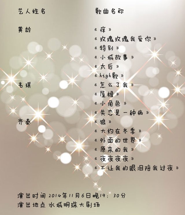 2014中国移动4G、宽带“咪咕和TA的朋友”无线巡演节目单