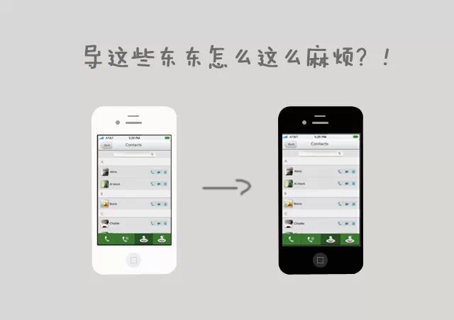 神马都正常,但就是通讯录、还有老婆拍的美照、短信神马的都不在新手机里......老婆直嫌导这些东东太麻烦......导的是一头雾水、一脸迷茫、天旋地转、天昏地暗......