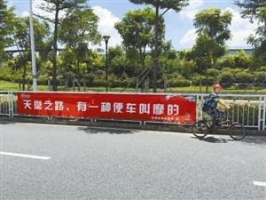 记者调查发现,这两个教育标语就位于光明新区华星光电技术有限公司1号门口的道路护栏上,该标语系华星光电技术有限公司制作。连日来,不少读者给晶报记者报料称,在光明新区华星光电技术有限公司1号门口的道路护栏上,悬挂着“摩的跑得快,阎王最喜爱。