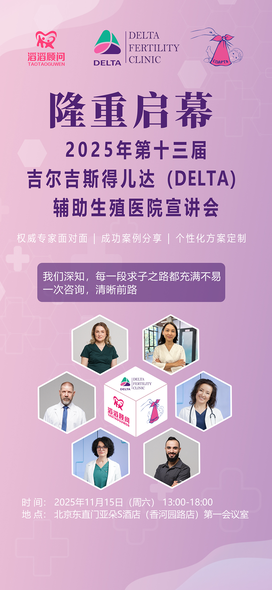 滔滔顾问作为得儿达DELTA中国官方服务部,为助孕家庭提供从前期咨询、报告评估、签证、赴及治疗、就医翻译、住宿、及接娃返程等全链条服务,您只需要专注于治疗本身,高效配合治疗即可。