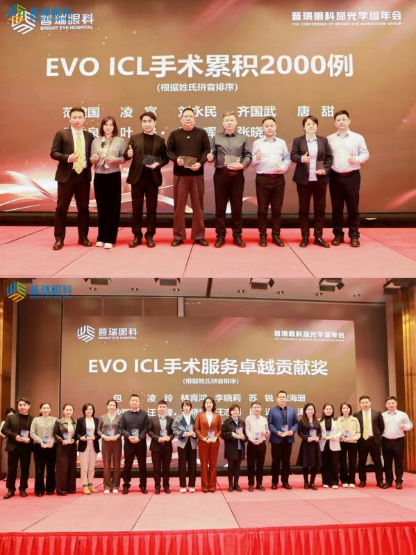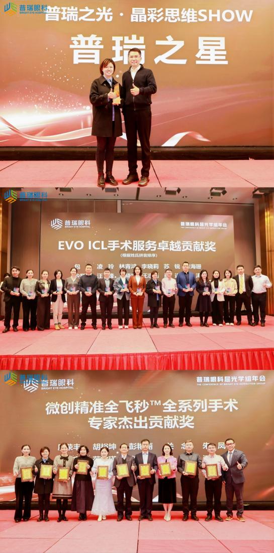 凌玲主任也凭借其在屈光手术领域的卓越表现,荣获了集团第一名“普瑞之光·晶彩思维SHOW”、“EVOICL手术服务卓越贡献奖”以及“微创精准全飞秒全系列手术专家杰出贡献奖”。