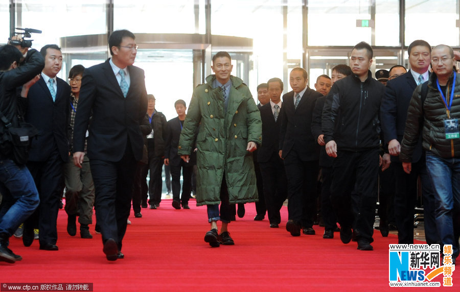 7日,沈阳气温骤降让携新片《风暴》宣传的刘德华措防不及,刘天王放下身价保暖要紧,裹上穿军大衣现身宣传现场,宣传其个人的第146部电影《风暴》。2013年12月09日 09:10:57| 责任编辑:张淳| 来源:新华娱乐
