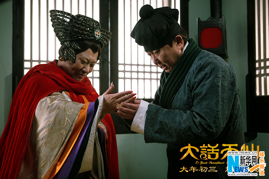 香港著名导演刘镇伟执导,《大话西游》姐妹篇《大话天仙》确定于2014年2月2日,农历大年初三正式上映,杀进竞争激烈的电影春节档。这部云集了孙俪、郑伊健、郑中基、郭德纲、林更新、黄奕、蔡少芬等人的爆笑喜剧片势必将给这 个春节档注入不一样的威力。昨日,片方首度曝光剧照,近日热点人物郭德纲戴上假睫毛,画上柳叶眉、桔色眼影,指甲被涂成鲜红色,还时不时摆出兰花指造型。这些剧照中,“她”脸部表情时而狰狞、时而狂笑、时而阴险,变幻无常,也让人对这部电影备受期待。
